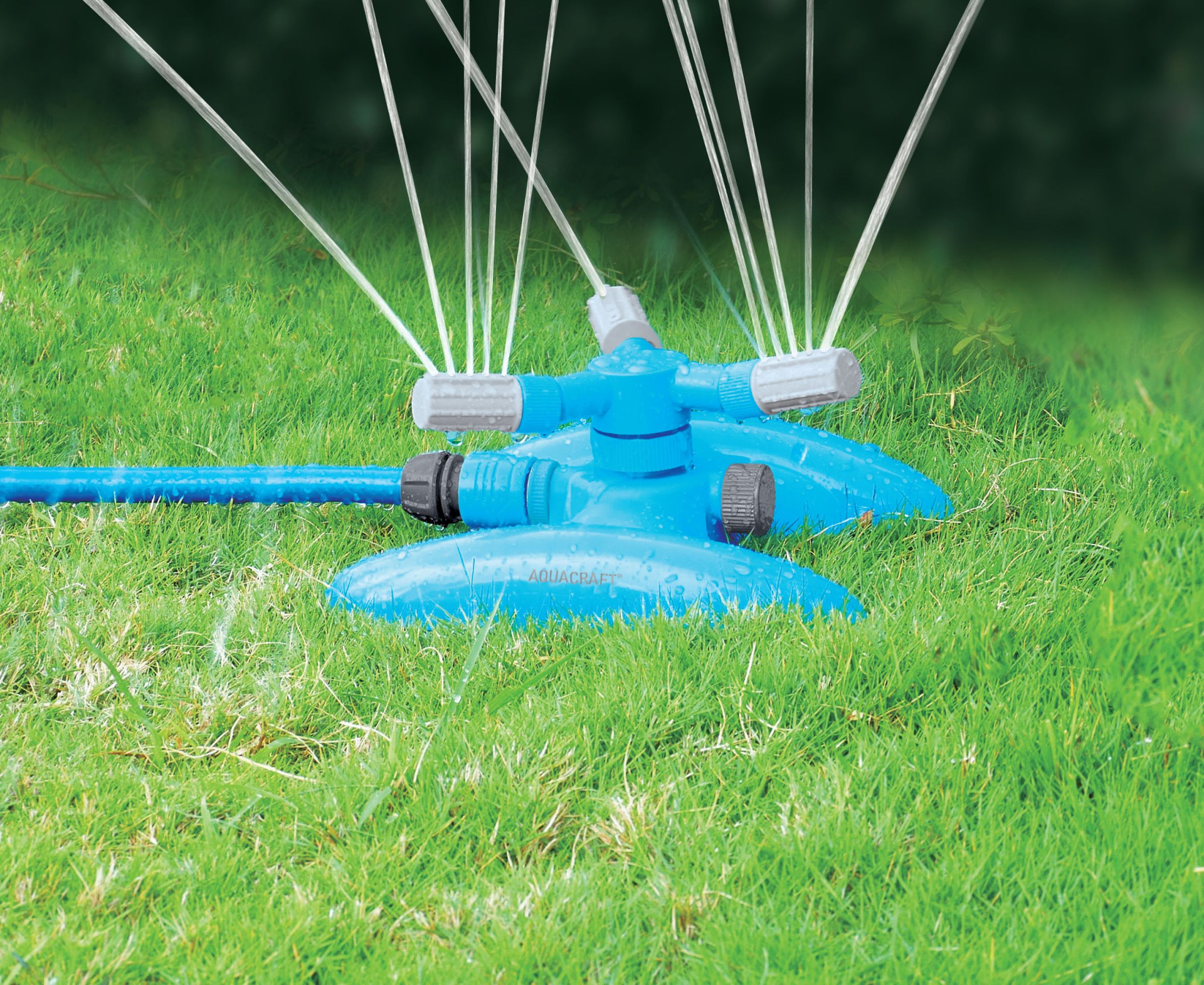 - Rotary 3-arm sprinkler for circular spray.